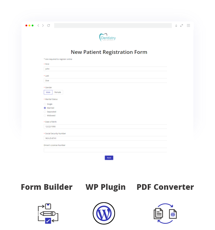 Submit PDF or Word form to HIPAAtizer and it will be converted into an online HIPAA-Compliant form with a HIPAA-Compliant printable form based on the original design. One form for FREE during the trial period!